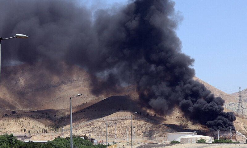 اسرائیلی حملے کے بعد شاہران آئل ڈپو میں دوسرے روز بھی آگ لگی ہوئی ہے