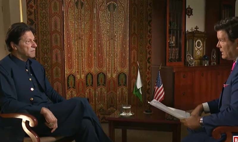 وزیر اعظم عمران خان کا کہنا ہے کہ بھارت کے ساتھ تنازعات کے حل کے لیے ایٹمی جنگ کوئی آپشن نہیں، بھارت جوہری ہتھیار ترک کر دے تو پاکستان بھی ایٹمی ہتھیار ترک کردے گا۔انہوں نے امریکی ٹی وی چینل ’فوکس نیوز‘ کو انٹرویو دیتے ہوئے کہا کہ ‘پاکستان نہیں چاہتا کہ ایران اور امریکہ کے درمیان کشیدگی بڑھے، امریکہ اور ایران کشیدگی سے پاکستان پر منفی اثرات مرتب ہونگے اور خطے کا امن اور معیشت متاثر ہونے کا خطرہ ہے’۔انہوں نے کہا ‘ہم خطے میں امن کے خواہاں ہیں اور اس کے لیے امریکہ اور ایران کے درمیان مصالحت کے لیے کردار ادا کرنے کو تیار ہیں’۔پاک بھارت تعلقات کے حوالے سے وزیراعظم عمران خان نے کہا کہ ہم بھارت کے ساتھ اچھے تعلقات کے خواہشمند ہیں، ایک ارب سے زائد آبادی والا یہ خطہ جنگوں سے پہلے ہی متاثر ہے۔ان کا کہنا تھا کہ ‘خطے میں مکمل امن اور خوشحالی چاہتے ہیں، ایٹمی ہتھیار کسی مسئلے کا حل نہیں’۔عمران خان نے کہا کہ ‘پاکستان اور بھارت کے درمیان تنازعات کی اصل جڑ مسئلہ کشمیر ہے، امریکہ واحد ملک ہے جو پاکستان اور بھارت میں ثالثی کرا سکتا ہے۔انہوں نے کہا کہ 72 سال سے حل طلب مسئلہ کشمیر کو حل کیے بغیر خطے میں امن ممکن نہیں، مسئلہ کشمیر حل ہو جائے تو پاکستان اور بھارت مہذب ہمسائے کی طرح رہ سکتے ہیں۔عمران خان نے کہا کہ تنازعات کے حل کے لیے ایٹمی جنگ کوئی آپشن نہیں، بھارت جوہری ہتھیار ترک کر دے تو پاکستان بھی ترک کردے گا ان کا کہنا تھا کہ پاکستانی مسلح افواج پیشہ ور اور ہر طرح کے چیلنجز سے نمٹنے کی صلاحیت رکھتی ہے، پاکستان کا انتہائی جامع اور موثر جوہری کمانڈ اینڈ کنٹرول سسٹم موجود ہے۔ایک سوال کے جواب میں وزیراعظم نے کہا کہ امریکا شکیل آفریدی کی بات کرتا ہے تو ہم عافیہ صدیقی کا مسئلہ بھی اٹھائیں گے، قیدیوں کے تبادلے کے سلسلے میں امریکا سے بات ہو سکتی ہے۔خطے میں دہشت گردی کے حوالے سے وزیراعظم نے کہا کہ امریکہ اور پاکستان دہشت گردی کے خلاف جنگ میں قریبی اتحادی رہے ہیں دہشت گردی کیخلاف جنگ میں 70 ہزار سے زائد قیمتی جانیں ضائع ہوئی ہیں۔وزیراعظم نے کہا کہ ہم افغانستان میں امن چاہتے ہیں، افغانستان کے امن اور استحکام میں پاکستان کو سب سے زیادہ دلچسپی ہے کیونکہ ہمسایہ ملک میں بدامنی سے براہ راست پاکستان پر اثرپڑتا ہے۔انہوں نے کہا کہ پاکستان کی افغانستان کے ساتھ 1500 کلو میٹر طویل سرحد ہے، صدر ڈونلڈ ٹرمپ نے افغانستان میں مذاکرات کے ذریعے امن لانے کی کوششوں پر زور دیا۔ان کا کہنا تھا کہ پاکستان کی کوششوں سے افغان طالبان کے ساتھ امن معاہدے پر پیش رفت ہوئی، طالبان کے ساتھ حالیہ امن مذاکرات اب تک کے کامیاب ترین مذاکرات رہے ہیں۔عمران خان کا کہنا تھا کہ طالبان کو حکومت کا حصہ بن کر عوام کی نمائندگی ملنی چاہئے، افغان طالبان افغانستان کے باہر کارروائیاں نہیں کرتے۔وزیراعظم نے کہا کہ امریکا نے چار دہائیوں تک افغانستان میں جنگ لڑی، مگر افغانستان میں امن و استحکام قائم نہیں ہو سکا، گزشتہ 19 برس کے دوران امریکا نے افغانستان میں امن کے لیے کردار ادا کیا ہے مگر ان کی کوششیں کامیاب نہیں ہو سکیں۔ایک سوال کے جواب میں وزیراعظم نے کہا کہ داعش پاکستان، امریکہ اور افغانستان ہی نہیں بلکہ پوری دنیا کے لیے خطرہ ہے۔وزیراعظم نے امریکی صدر ٹرمپ سے ملاقات کے حوالے سے کہا کہ صدر ٹرمپ صاف گو انسان لگے جو لفظوں کی ہیرا پھیری نہیں کرتے، میرا پورا وفد بھی میٹنگ سے بہت خوش ہے۔انہوں نے بتایا کہ صدر ٹرمپ مسئلہ کشمیر کے حل کے لیے کردار ادا کرنا چاہتے ہیں۔