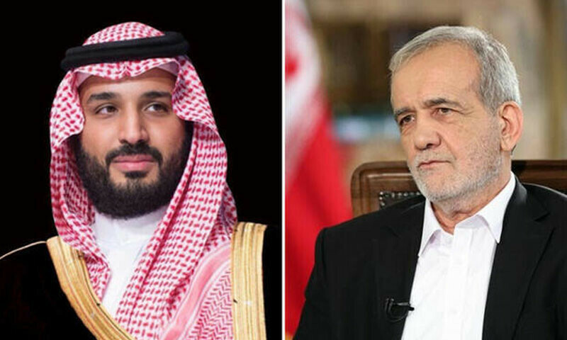سعودی خبر رساں ایجنسی (سپا) کے مطابق منگل کے روز سعودی ولی عہد شہزادہ محمد بن سلمان کو ایرانی صدر مسعود پزیشکیان کی جانب سے ٹیلی فونک موصول ہوا۔