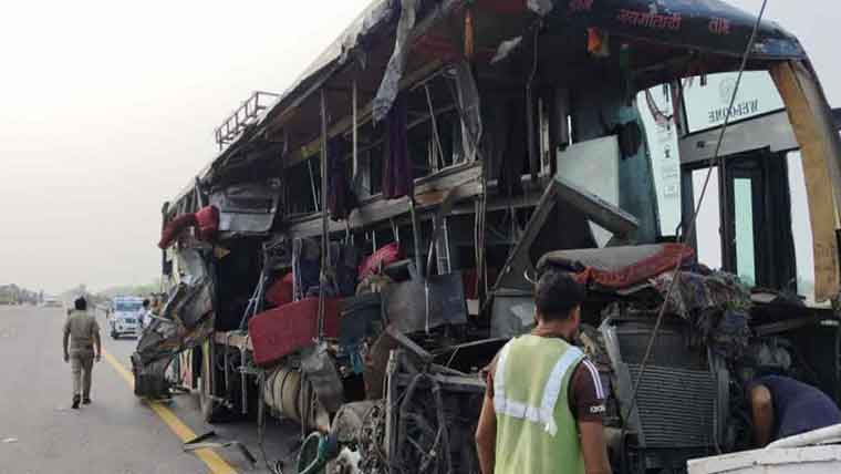 پولیس کاکہنا ہے کہ ڈبل ڈیکر بس بہار سے دہلی جارہی تھی ، لکھنؤ آگرہ ایکسپریس وے پر بس پیچھے سے دودھ کے ٹینکر سے ٹکراگئی۔