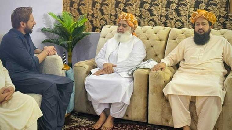 جے یو آئی کی جانب سے جاری کیے گئے بیان کے مطابق ملاقات میں دونوں شخصیات کے درمیان ملکی سیاسی صورتحال پر تبادلہ خیال کیا گیا۔