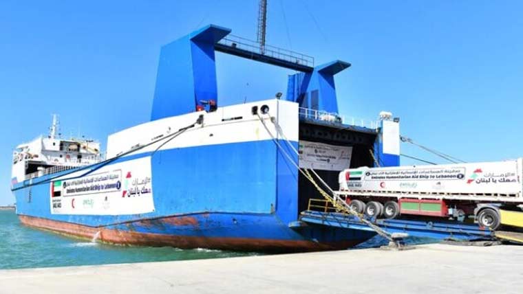 مقامی میڈیا کی رپورٹ کے مطابق بحری جہاز جبل علی پورٹ سے بیروت کے لئے روانہ کیا گیا جو متحدہ عرب امارات کی جانب سے اس سال اکتوبر میں لبنانی متاثرین کے لئے شروع کی جانے والی مہم کا حصہ ہے۔