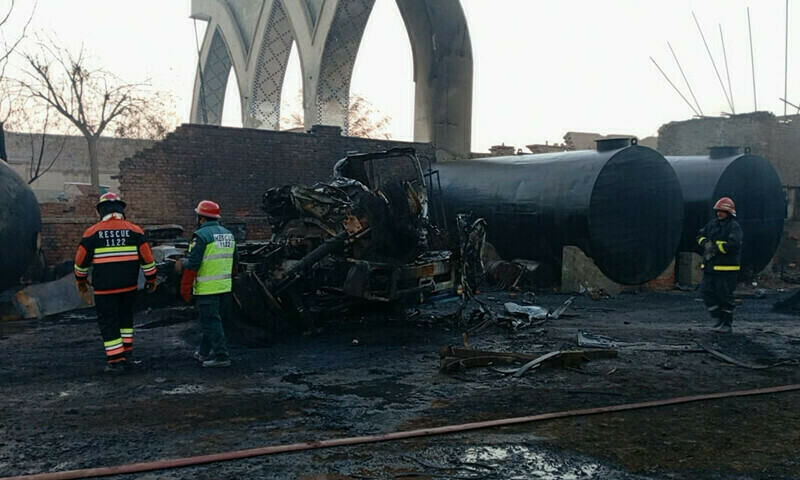 باؤزر دھماکا رات 12 بجے کے بعد ہوا تھا، سی پی او صادق علی ڈوگر کے مطابق ریسکیو ٹیموں نے آگ بھجانے کے بعد علاقے کو کلیئر کردیا۔