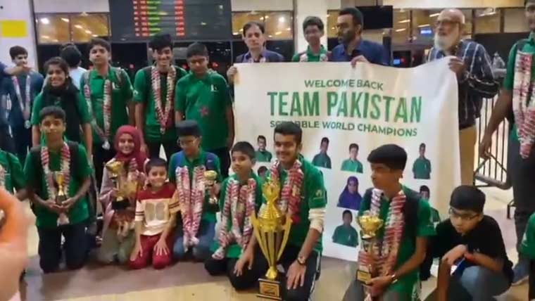 کراچی: ورلڈ یوتھ سکریبل چیمپئن شپ کی فاتح پاکستان ٹیم سری لنکا سے وطن واپس پہنچ گئی ۔