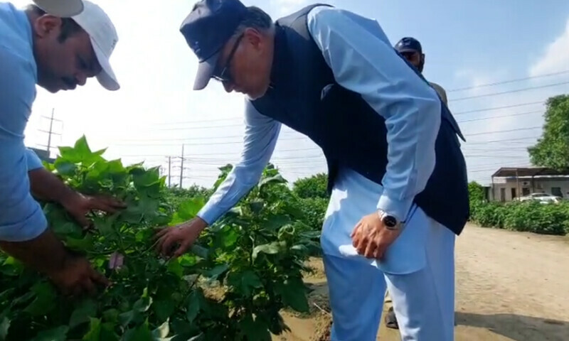 پاکستانی زرعی ماہر نے 50 ڈگری تک درجہ حرارت برداشت کرنے والا کپاس کا بیج تیار کر لیا جو بغیر اسپرے کیڑوں سے مقابلہ کرسکتا ہے، وفاقی وزیر منصوبہ بندی احسن اقبال نے لاہور میں اس بیج سے تیارکپاس کی فصل کا معائنہ کیا، ان کا کہنا تھا کہ 20 سال کے تجربے کے بعد تیار اس بیج سے کپاس کے شعبے میں انقلاب برپا ہو سکتا ہے، موسمیاتی تبدیلیوں کے اثرات سے نمٹنے کے لیے ایسی جدید زراعت کو فروغ دینا ہوگا۔