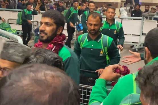 لاہور: ڈیف ٹی 20 ورلڈ کپ 2024ء کی فاتح پاکستانی ٹیم وطن واپس پہنچ گئی، ایئرپورٹ پر کھلاڑیوں کا شاندار استقبال کیا گیا۔