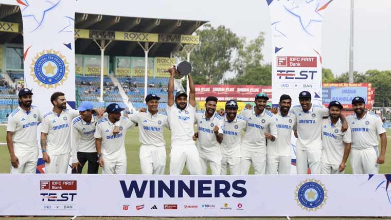 بھارت کے یشاسوی جیسوال نے 45 بالوں پر 51 رنز کی بہترین اننگز کھیلی جبکہ ویرات کوہلی 29 رنز پر ناٹ آؤٹ رہے، دوسرے ٹیسٹ میں فتح کے بعد بھارت نے بنگلہ دیش کے خلاف دو ٹیسٹ میچوں کی سیریز میں کلین سویپ کردیا۔