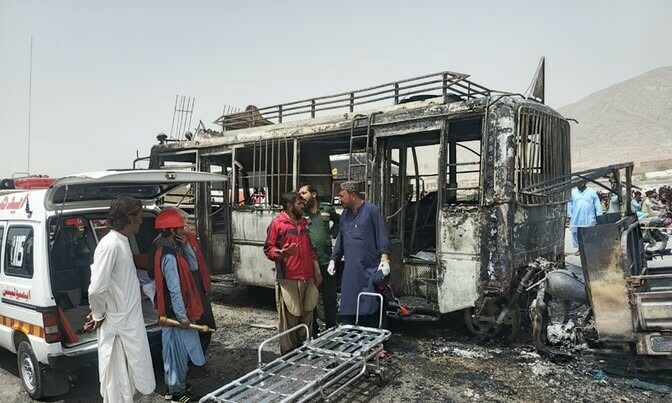 کوئٹہ میں مغربی بائی پاس پرپیٹرول سے بھرے رکشے اور بس کے درمیان تصادم کے بعد بس میں آگ بھڑکنے سے 6 مسافر جاں بحق جب کہ 7 زخمی ہوگئے۔